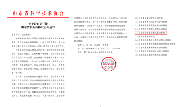 3月,山东省科学技术协会印发《关于公布第三批山东省企业科协试点的通知》,格瑞德集团有限公司科协成功入选第三批山东省企业科协试点。截止目前,德州市共有山东省企业科协试点7家。集团成功入选,再次表明集团高度重视企业科协建设,也显示了集团在科技创新和行业发展方面的的卓越表现。